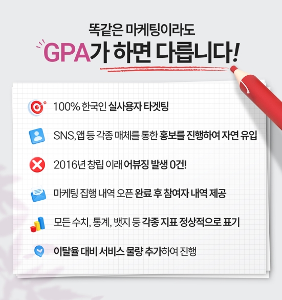 * 100% 한국인 실제사용자들로 마케팅 진행됩니다.